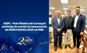 A Associação Empresarial do Polo Plástico de Camaçari (AEPC) participou do evento de lançamento da INDEX BAHIA 2026, que ocorreu no auditório da FIEB – Federação das Indústrias do Estado da Bahia na última sexta-feira (24), e contou com a presença dos representantes do setor industrial, autoridades públicas, de diversas instituições de classes e da imprensa baiana.