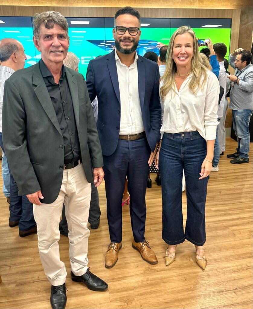 Imagem: Vicente Genildo Ribeiro, vice-presidente da AEPC, Fernando Muniz, diretor presidente da AEPC, e Naiana Muniz, secretária executiva do SINDIPLASBA.