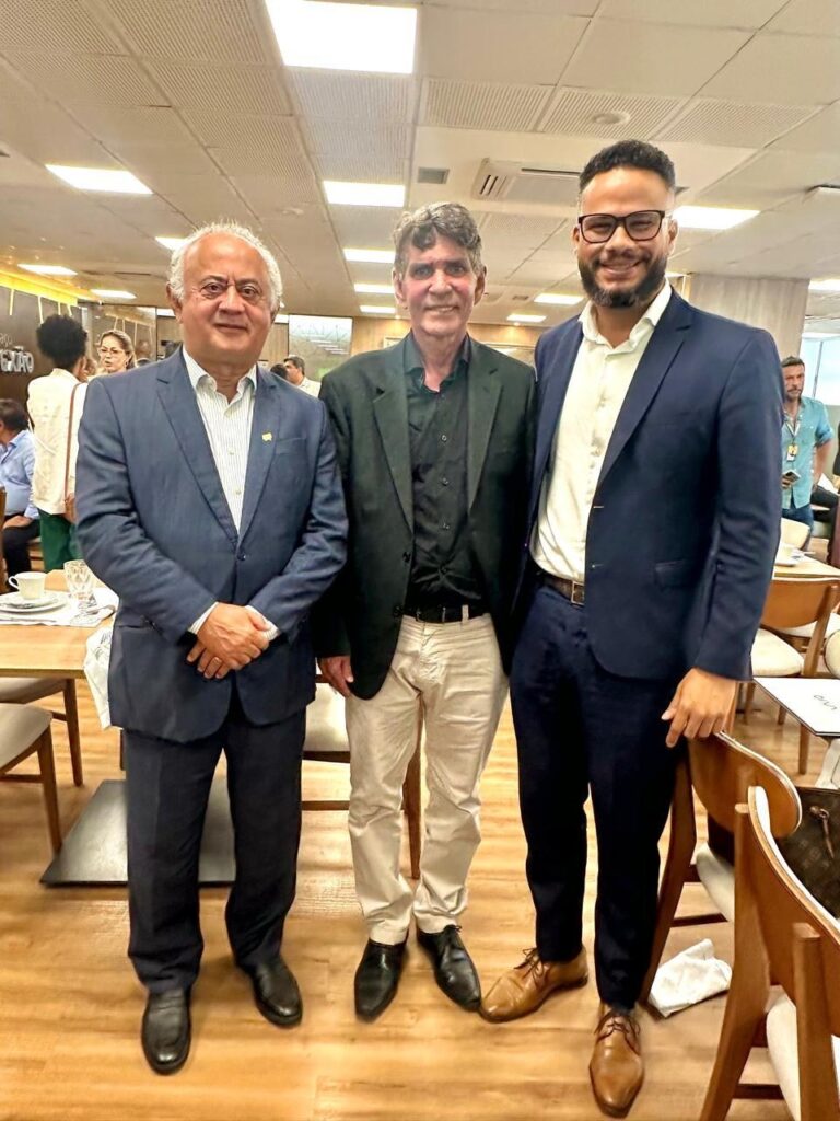 Imagem: Carlos Henrique Passos, presidente da FIEB, Vicente Genildo Ribeiro, vice-presidente da AEPC, e Fernando Muniz, diretor presidente da AEPC.