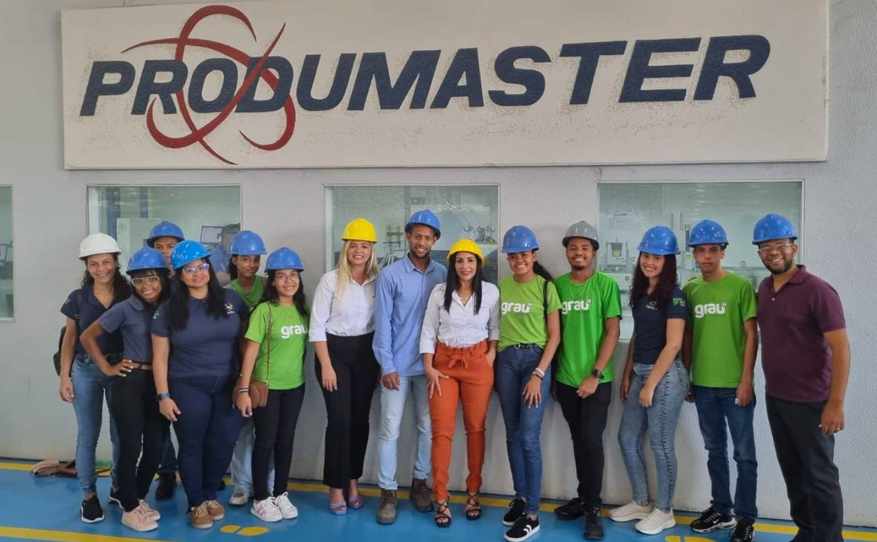 Os alunos e alunas do curso de Logística da escola Grau Técnico visitaram a unidade industrial da Produmaster, que fica localizada no Polo Plástico de